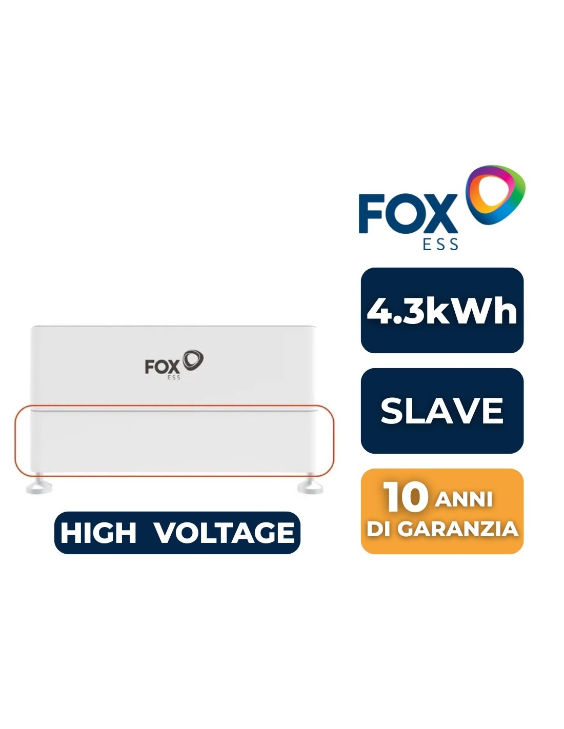 La batteria HV Slave FOX da 4,3 kWh è un modulo di accumulo aggiuntivo progettato per essere utilizzato in combinazione con il modulo HV Master FOX. Basata su tecnologia LiFePO4 (Litio Ferro Fosfato), garantisce elevata sicurezza, lunga durata operativa e ottima stabilità termica, rendendola ideale per sistemi fotovoltaici residenziali e commerciali.