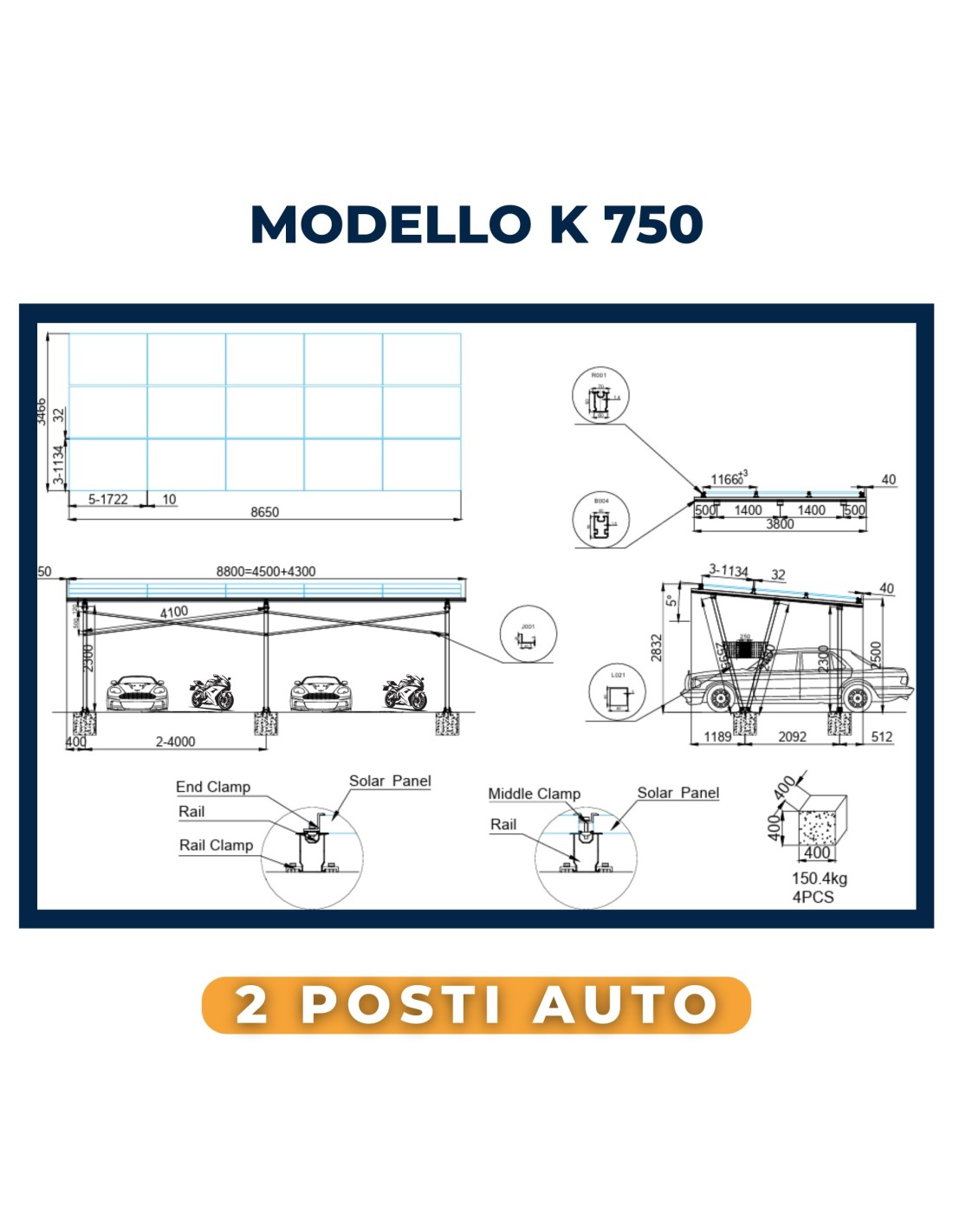 Pergola M740 in alluminio per 1 auto: copertura elegante con pannelli