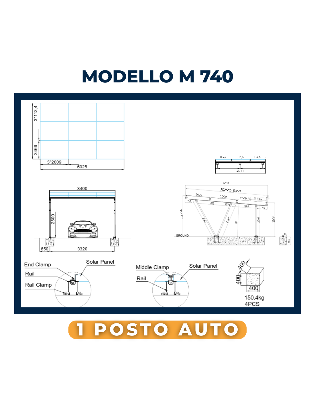 Pergola fotovoltaica K750 in alluminio per 2 auto: struttura robusta e