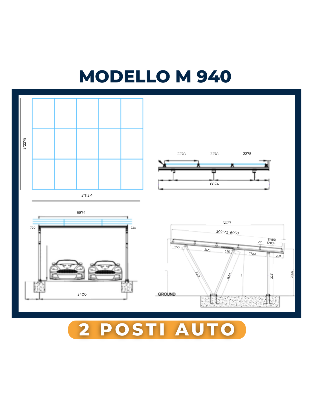 Pergola M940 in alluminio per 2 auto: design robusto, energia pulita e protezione completa per il tuo parcheggio.