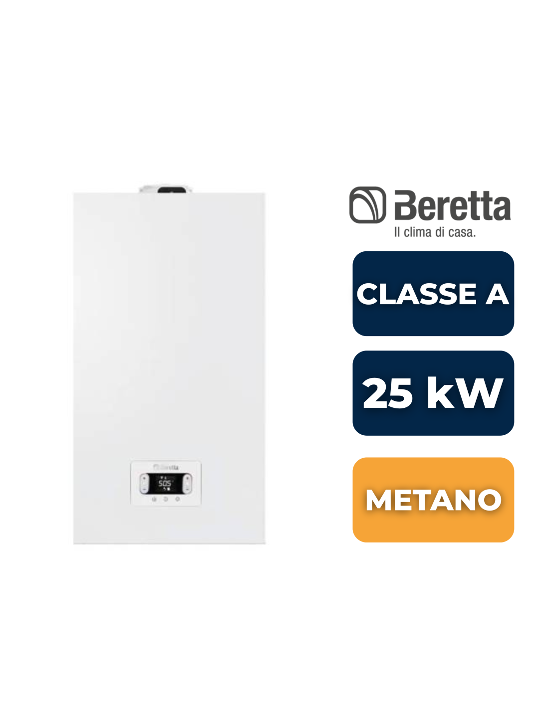 Potenza termica nominale: 25 kW — adatta per appartamenti e abitazioni singole di metrature medio-piccole.