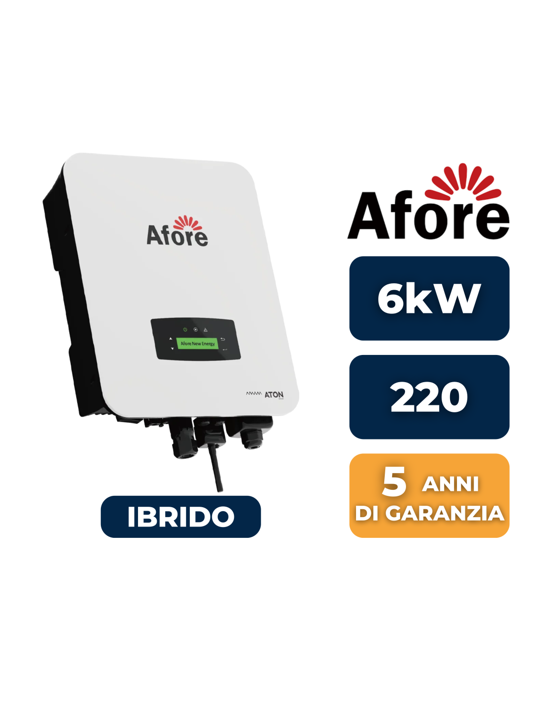 L’Afore AF6K-SL – 6 kW monofase è un inverter ibrido ad alte prestazioni, progettato per impianti fotovoltaici residenziali con elevate richieste di potenza. La compatibilità con batterie ad alta tensione (80–495 V) assicura velocità ed efficienza nei cicli di accumulo, mentre la conformità CEI-021 garantisce totale idoneità per l’installazione in Italia.